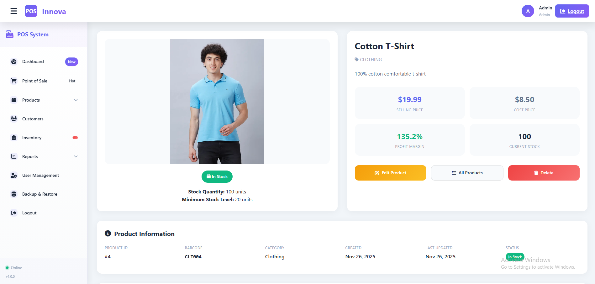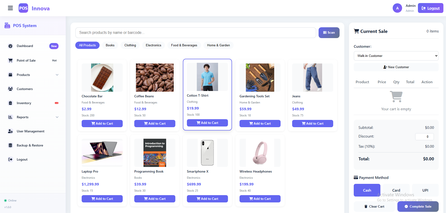 Cashier – Can only perform sales operations and view their sales reports, but cannot add or edit products.