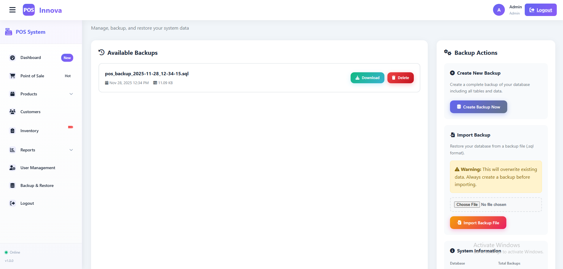 Manager – Can manage sales and view detailed reports, but cannot create users.