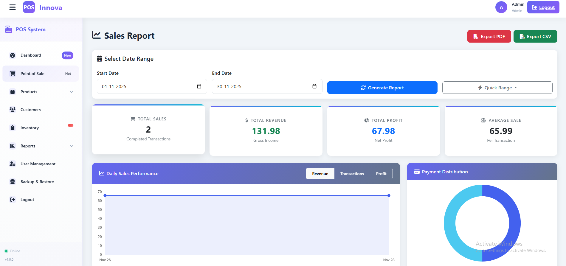 Export Options (Reports in PDF/CSV).