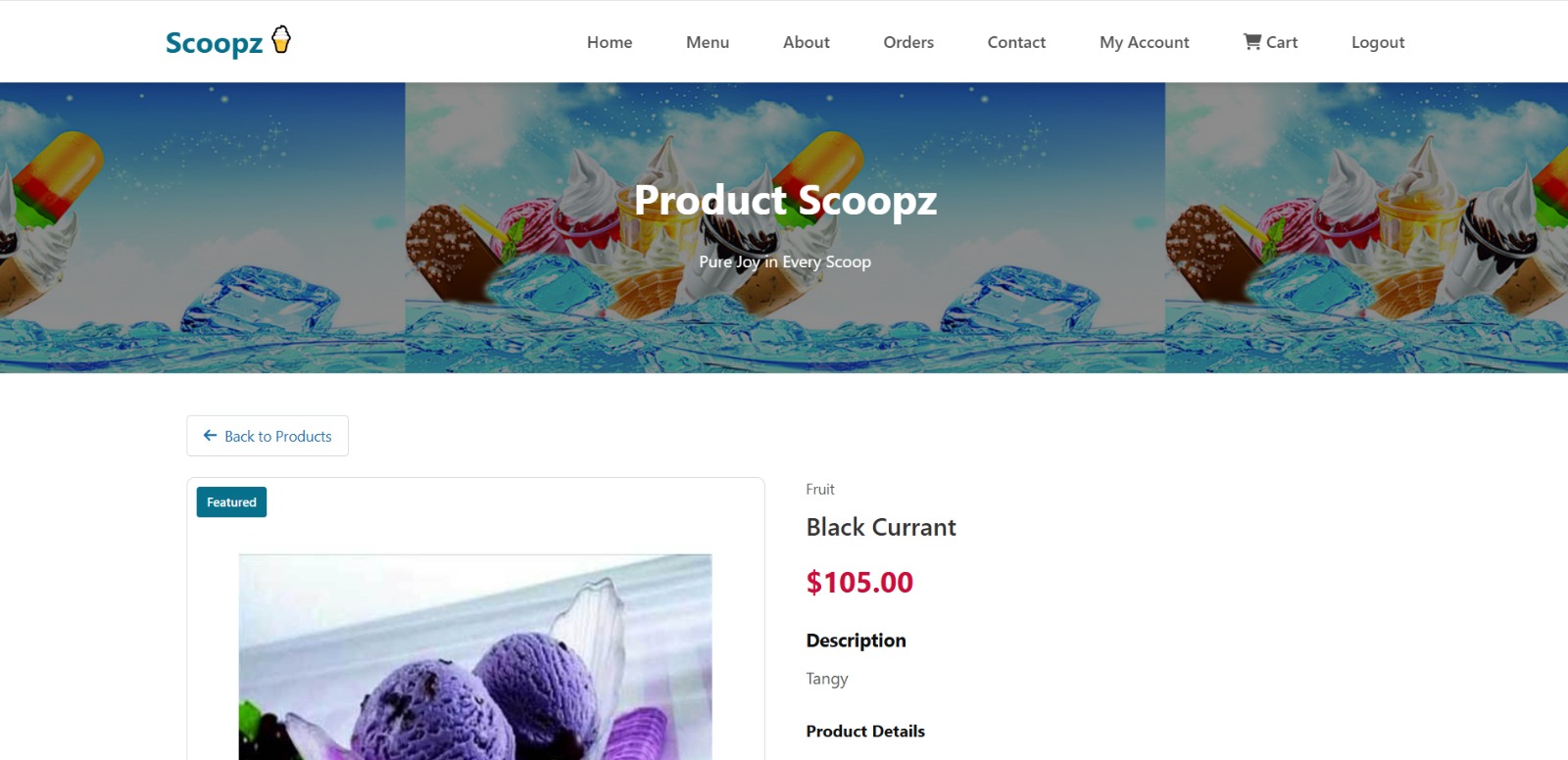 ✔ Ice cream product catalog with images & pricing