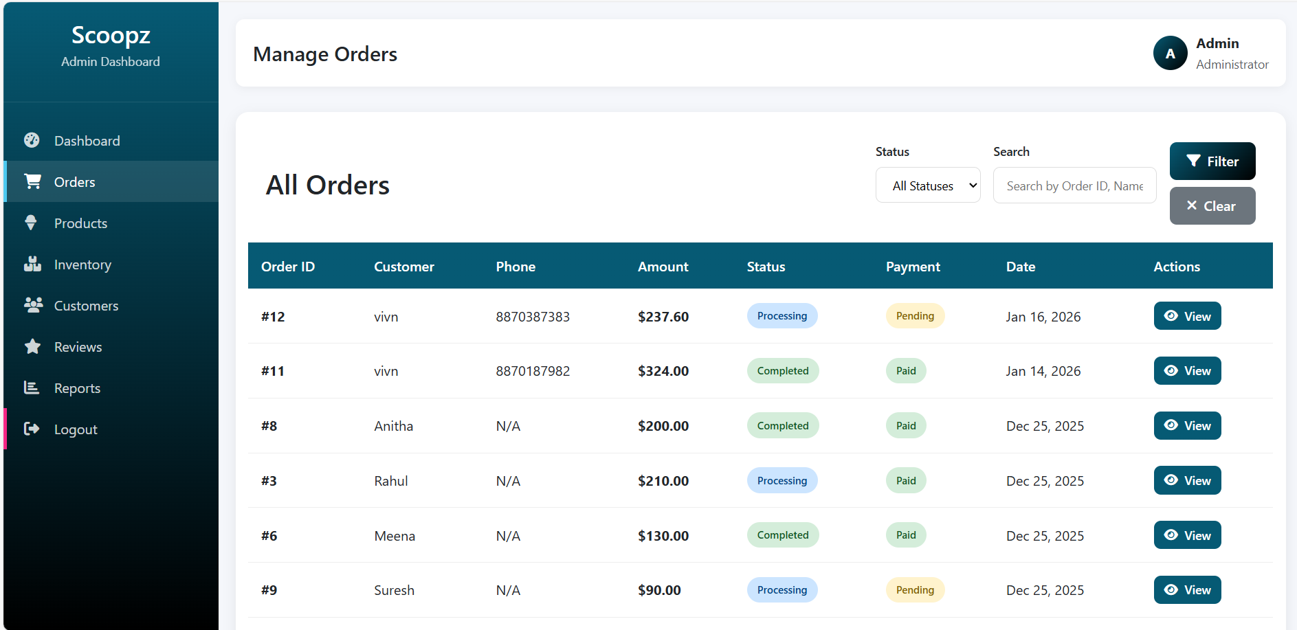 ✔ Order management (Admin Panel)