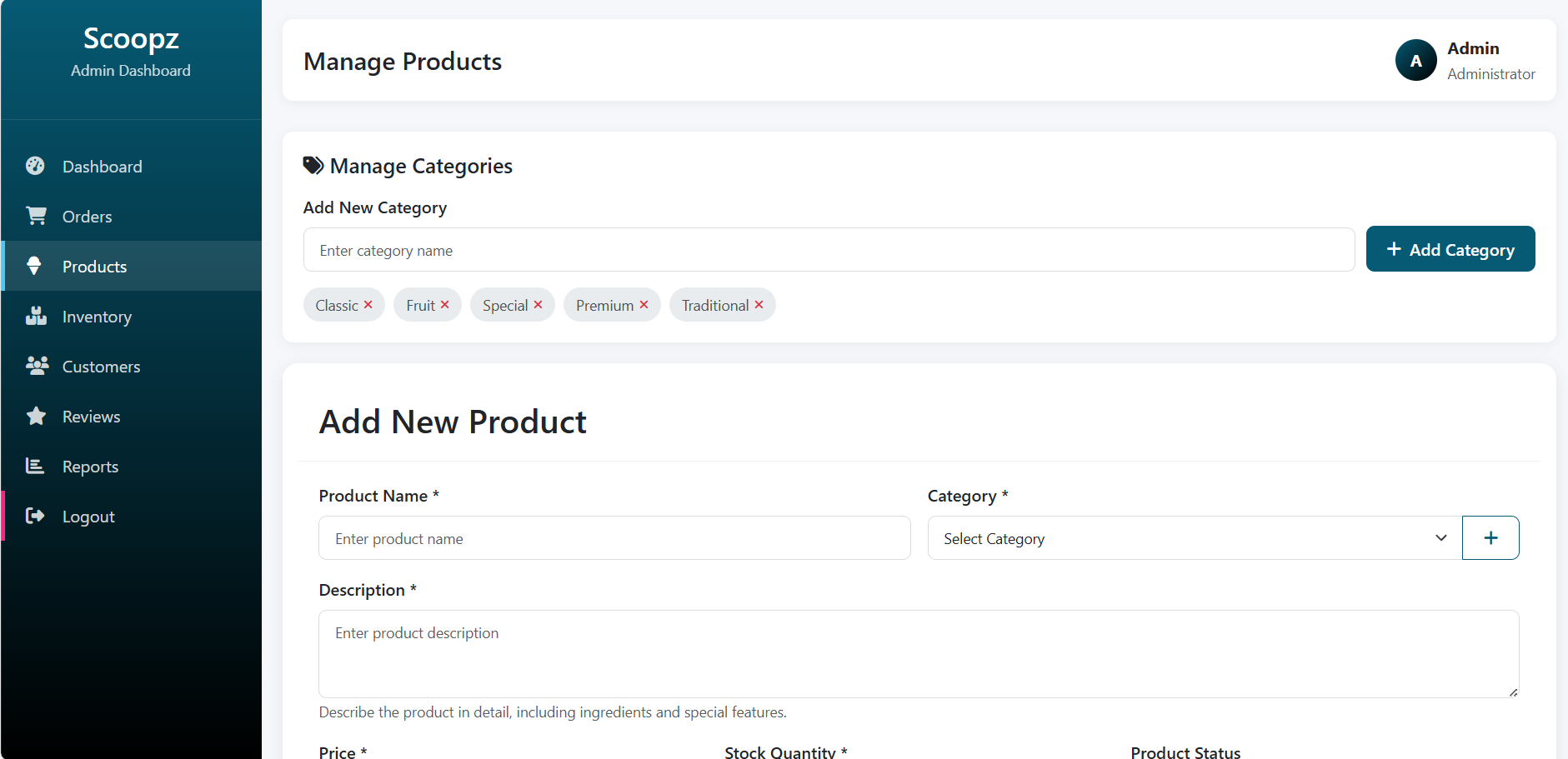 Admin add, edit & delete products