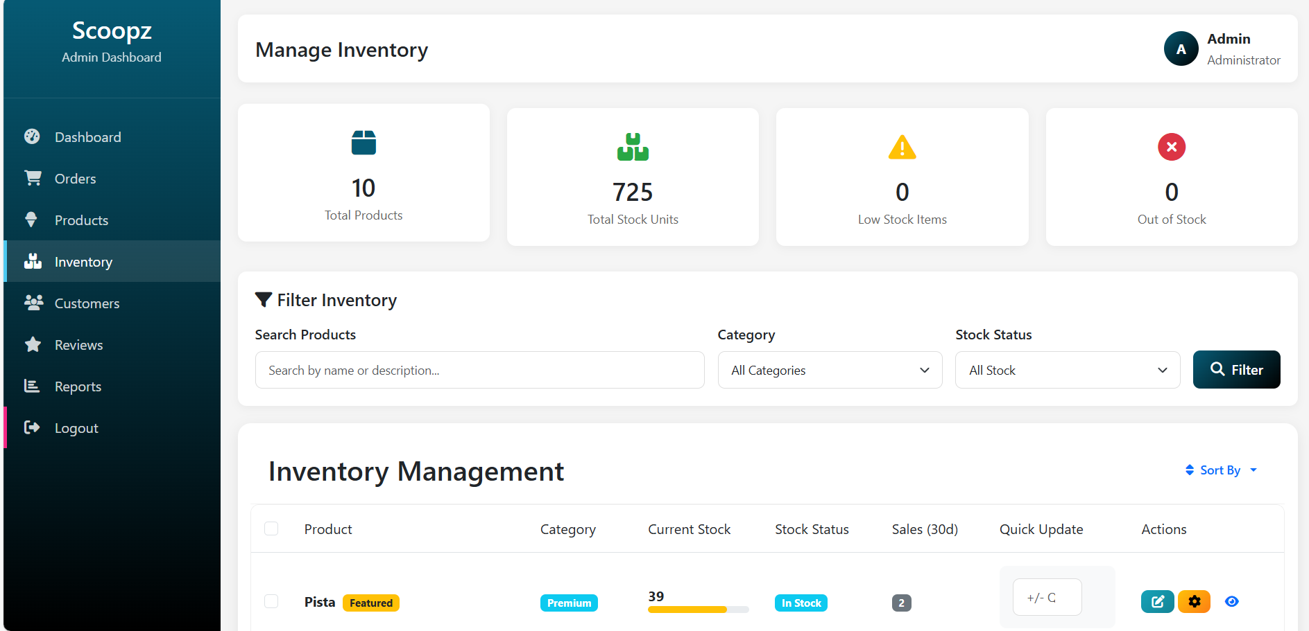 Admin stock updates