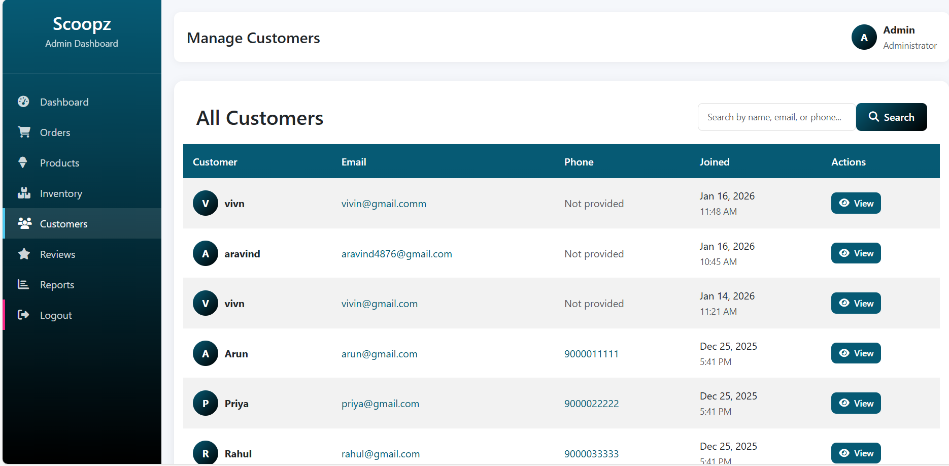 View all registered customers