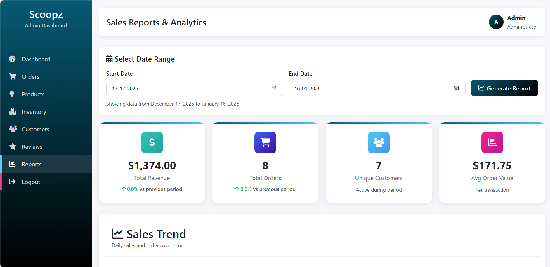 ✔ Sales reporting & admin dashboard