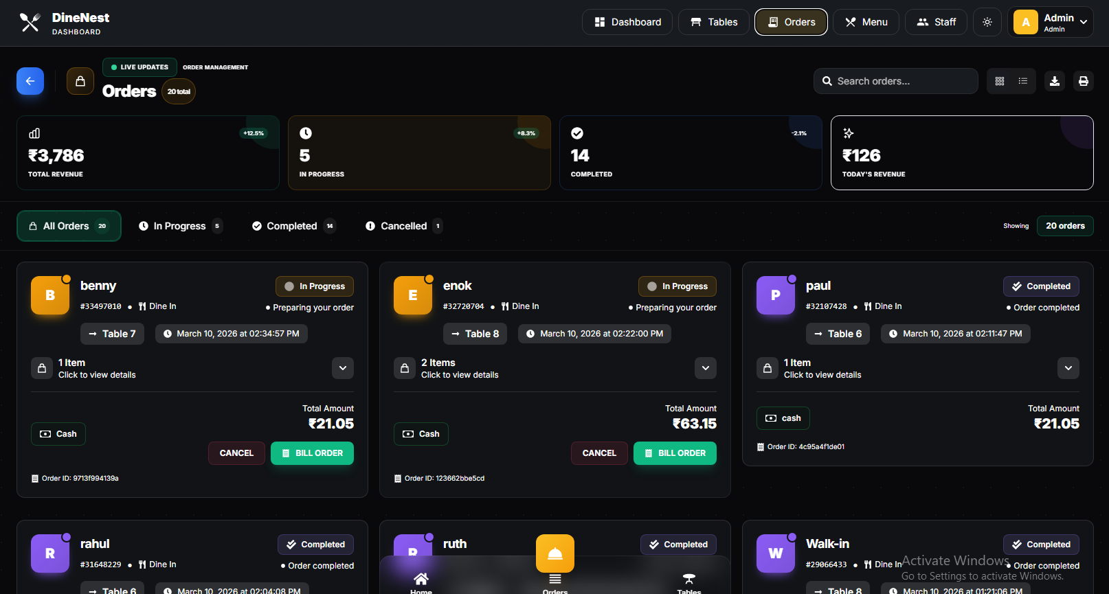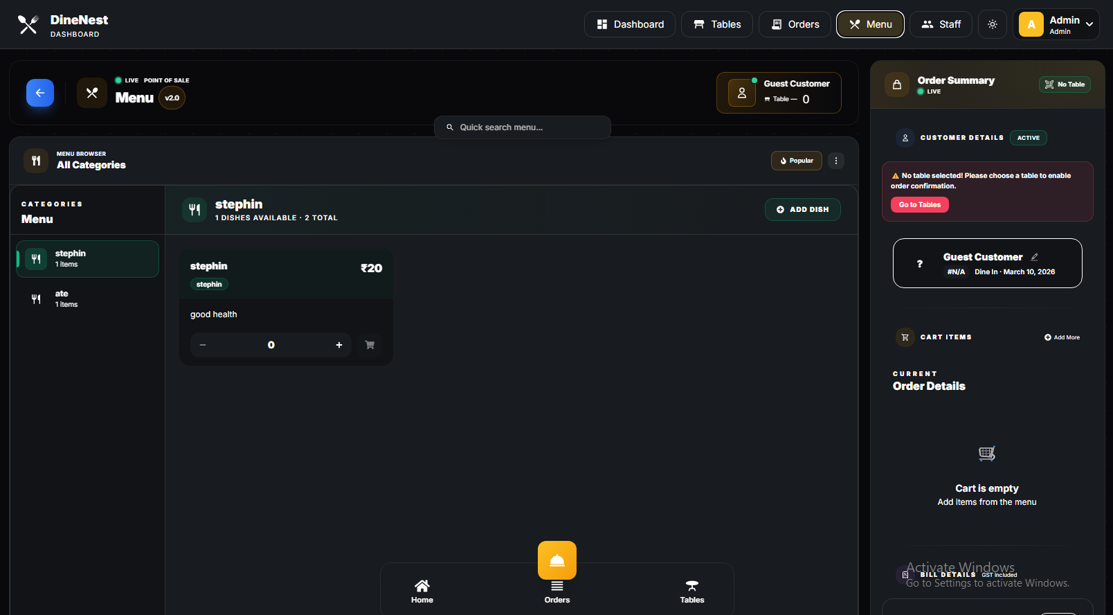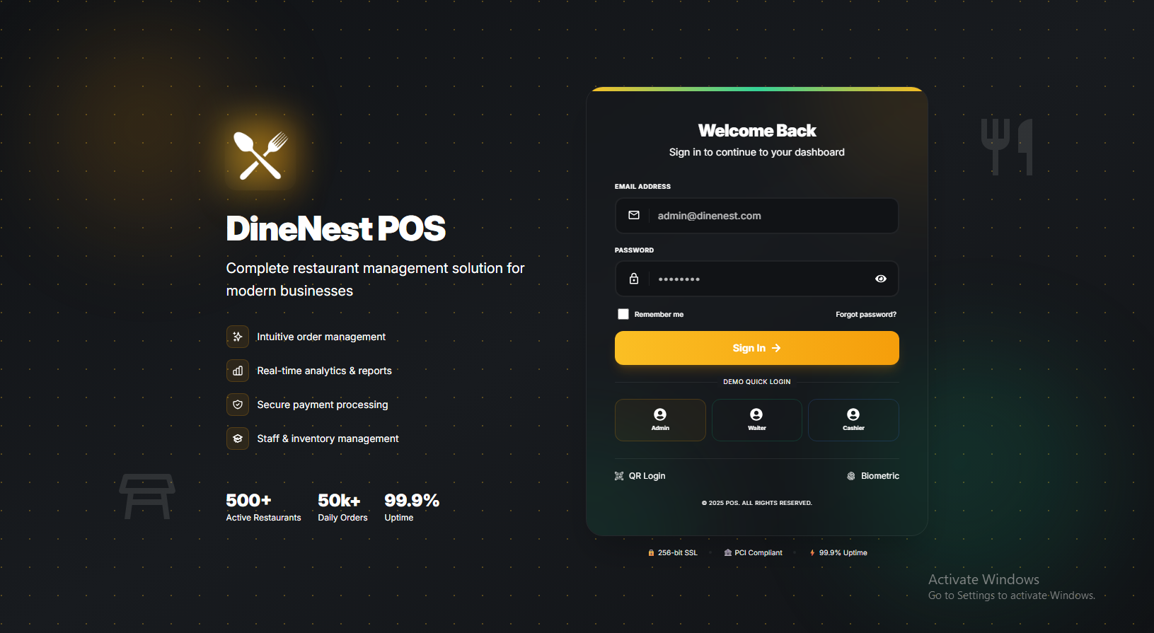 This system is designed for real restaurant workflows where waiters, cashiers, and administrators have different roles and permissions. It includes secure authentication, order lifecycle management, billing system, and advanced analytics for better restaurant operations.
